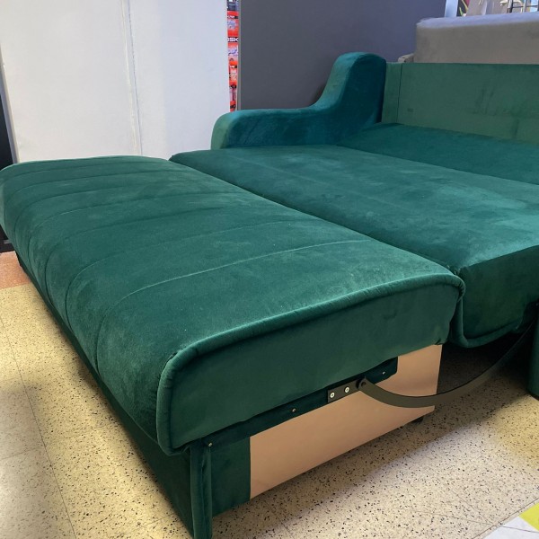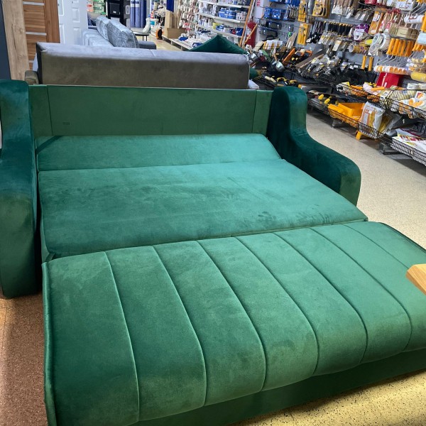Canapea extensibila realizata pe structura metalica, plasa arcuri(relaxa), poliuretan, spatiu de depozitare. Structura metalica robusta .