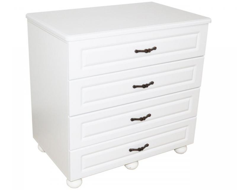 Comoda Dynasty Alb cu 4 sertare si blat MDF