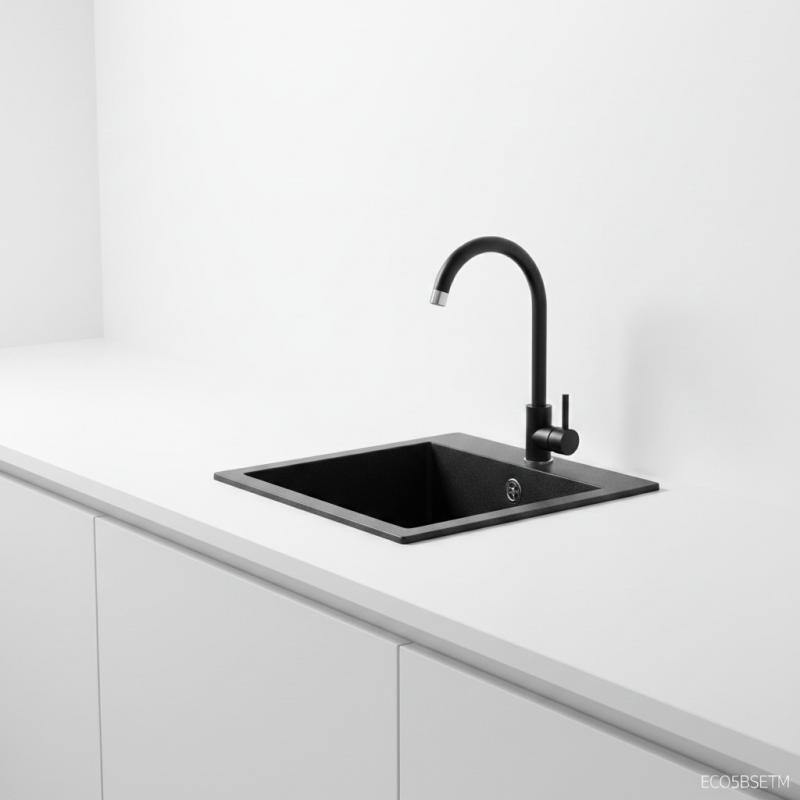 Pachet chiuveta blat Evido+baterie negru 49x51 ECO5BSETM