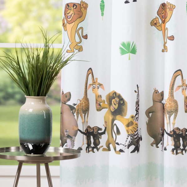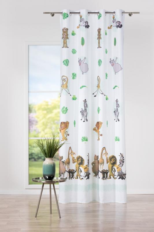 Draperie copii, inaltime 280cm, model Madagascar alb/verde, 19-DMADAGASK-01