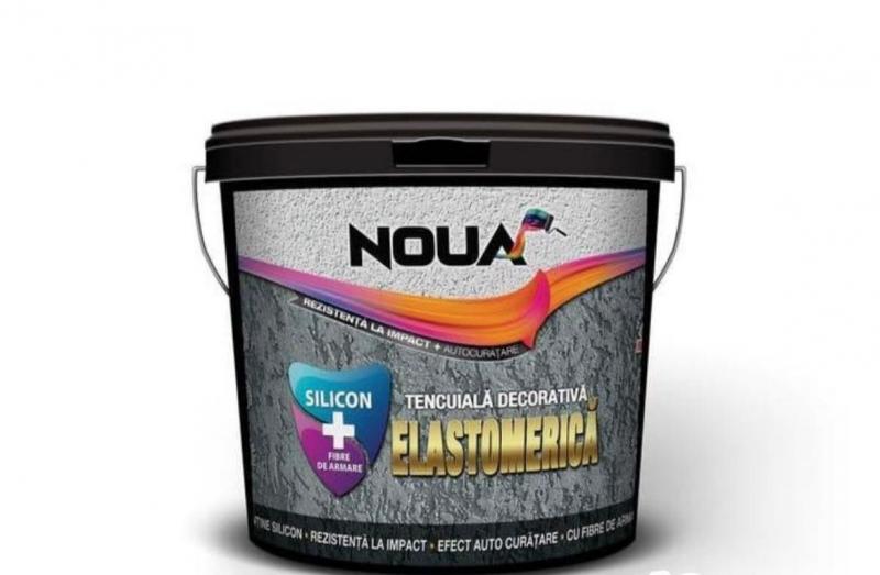 Tencuiala decorativa Noua Elastomerica cu silicon si fibre de armare este un produs elastic, dur cu aspect mat, structurat, ce se utilizeaza pentru finisaje interioare si exterioare. Aspect masa pastoasa, omogena, cu agregate minerale cu dimensiunea cuprinsa intre 1,5-2,5 mm. Tencuiala decorativa structurata, cu elastomeric siliconati, este un produs peliculogen fabricat pe baza de dispersii apoase, avand la baza un elastomer siliconat, armata cu fibre care ii confera o rezistenta sporita la impact si fisuri. Se poate aplica pe orice suprafata de baza minerala precum: tencuieli uzuale de var-ciment, ciment-var, gleturi de ipsos, beton, placi de gips – carton si pe vopsitorii vechi rezistente la frecare si uzura.